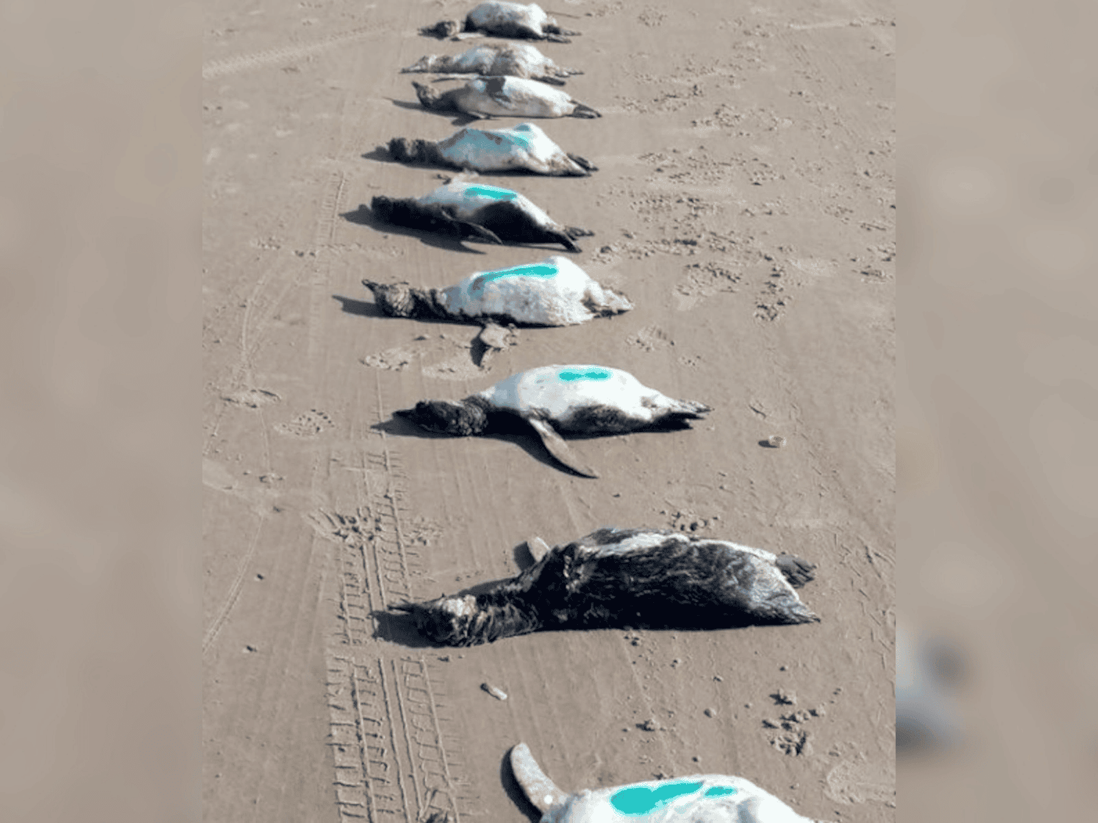 On another continent, this is South America, the situation is completely analogous. Again, I'll recall a case I wrote about earlier — in July 2023, Uruguay, in the midst of winter on the Atlantic coast, more than two thousand dead Magellanic penguins were washed ashore in a very short time. Almost all of them were young birds, meaning this is exactly the healthy gene pool of the population! And at that time, the head of the Department of Wildlife declared that 90% of them were "young individuals without fat reserves and with empty stomachs".
